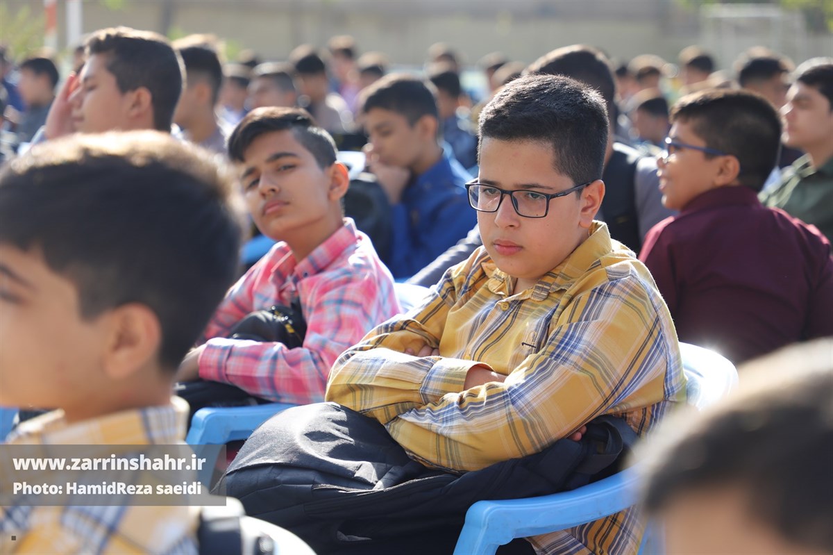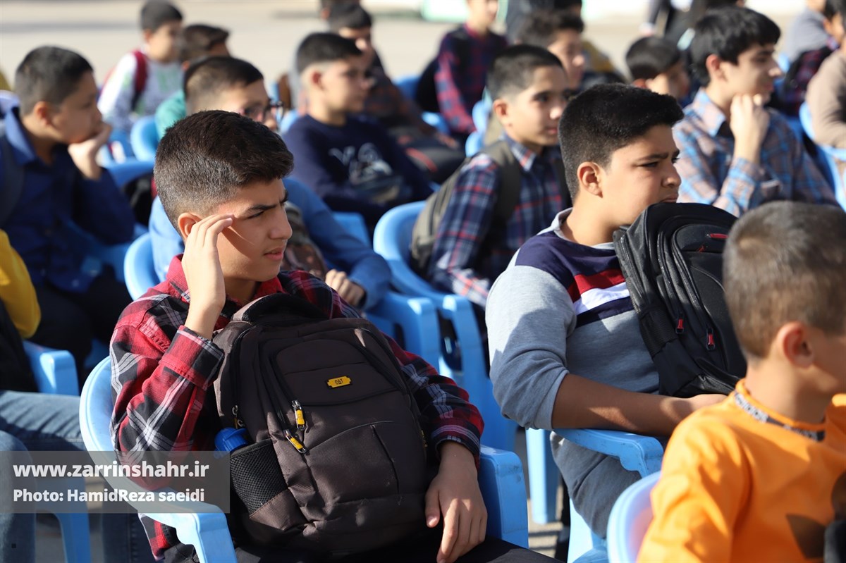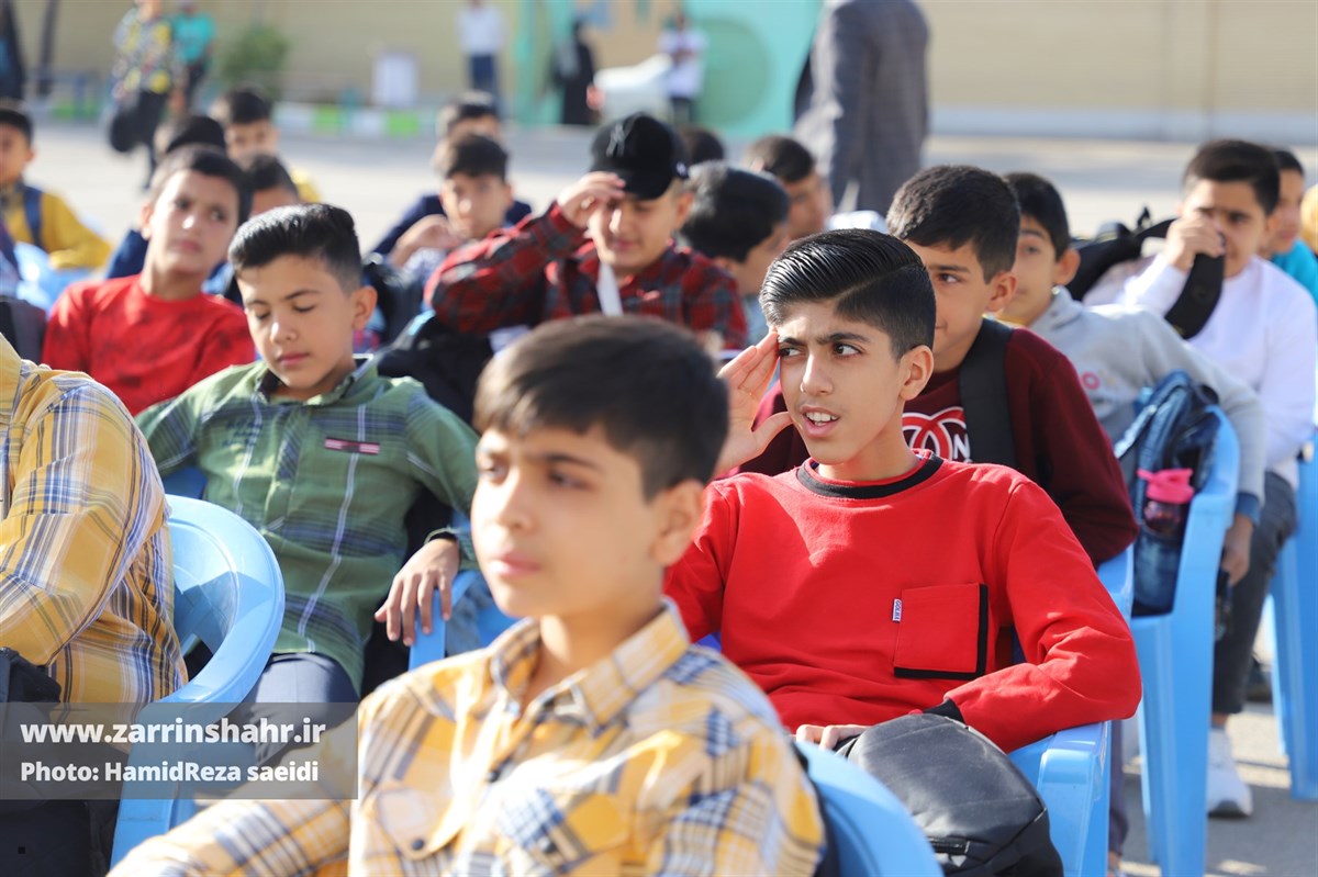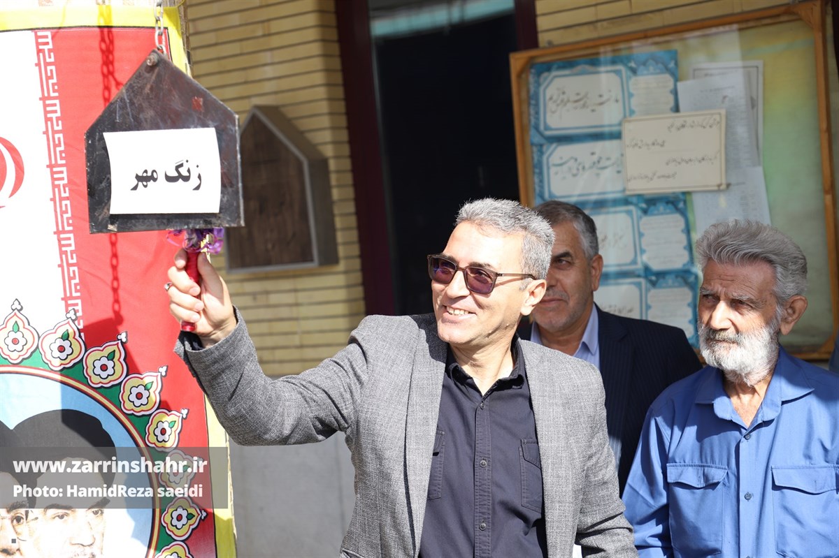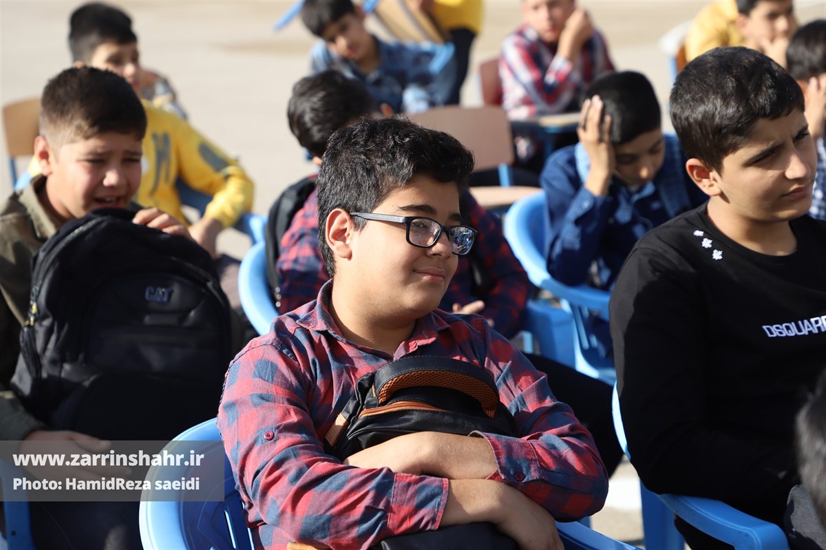گزارش تصویری آیین بازگشایی مدارس همراه با نواختن زنگ مهر در زرین شهر