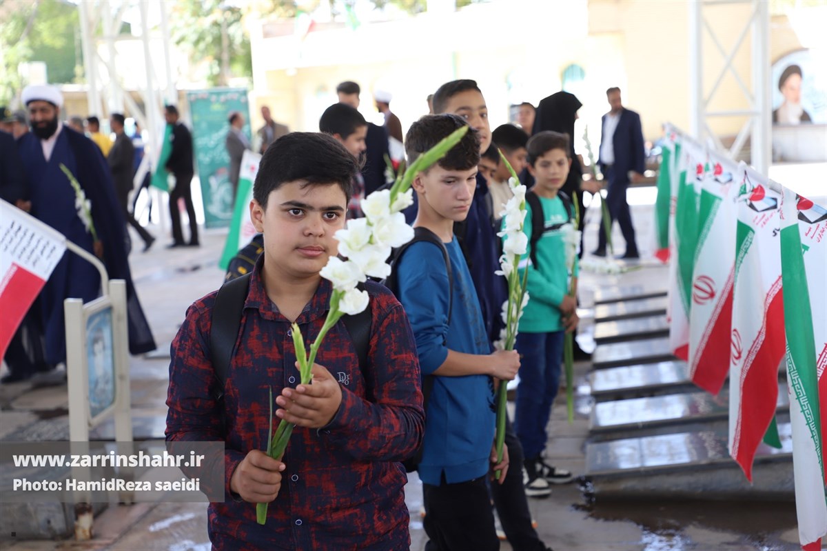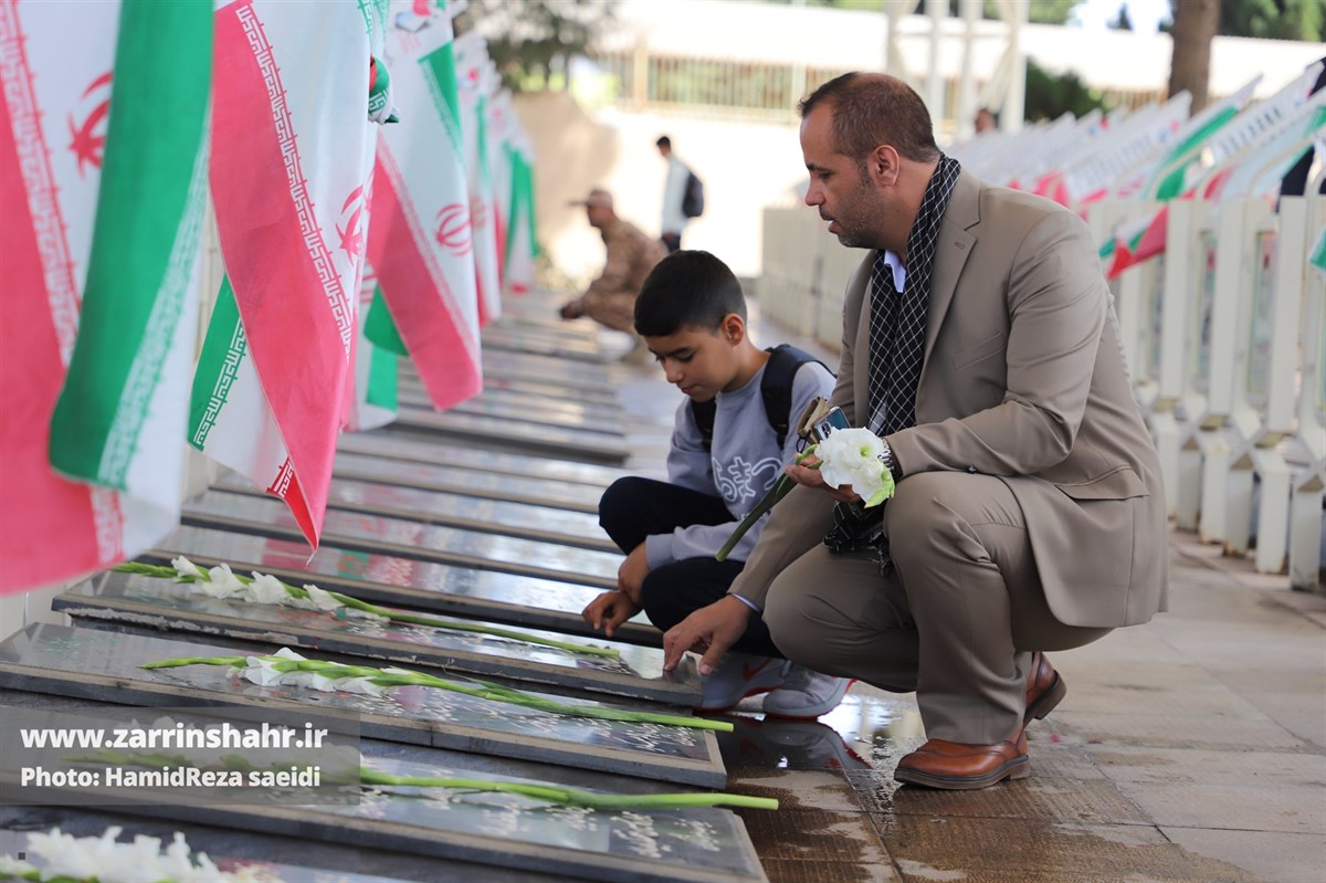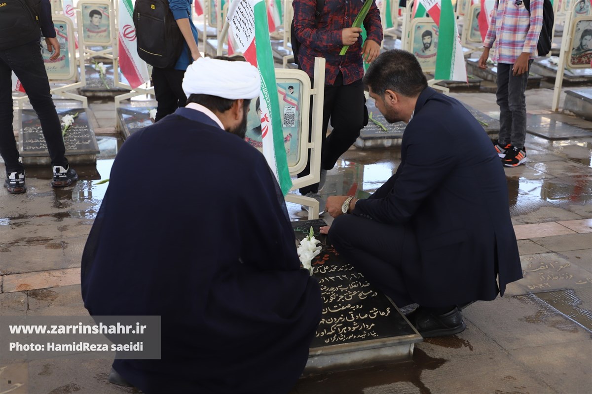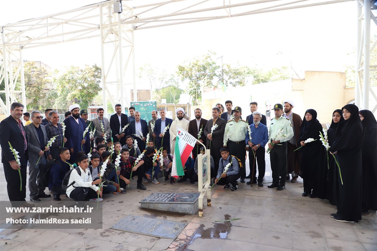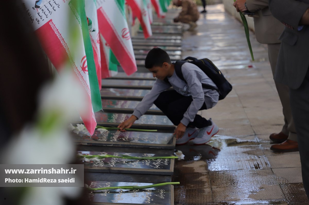 همچنین به مناسبت آغاز هفته دفاع مقدس مسئولین و دانش آموزان باحضور در گلزار شهدای زرین شهر با گلباران و عطرافشانی قبور شهدا با آرمان های امام (ره) و شهدا تجدید میثاق نمودند.