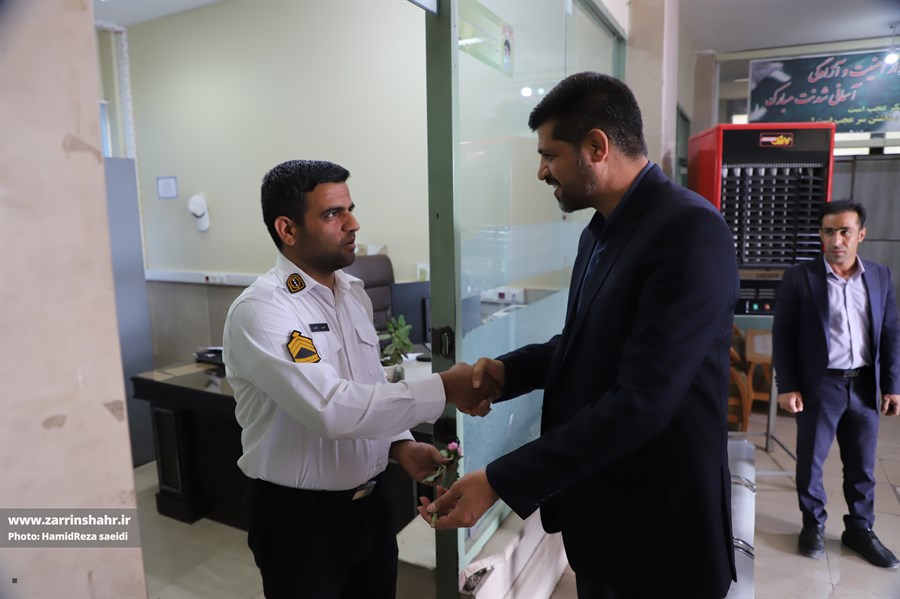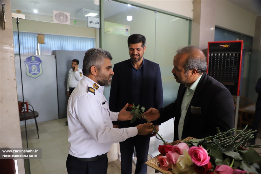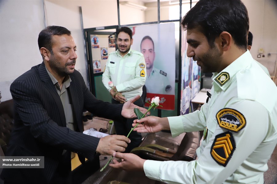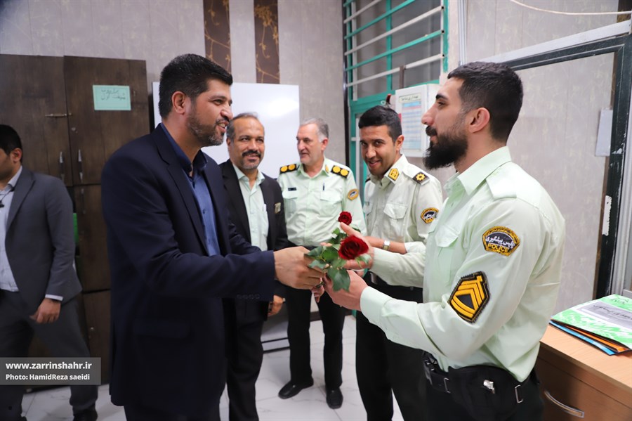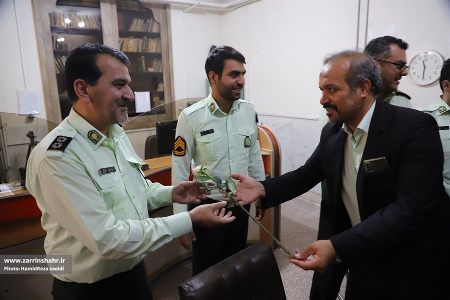 به گزارش اداره ارتباطات مردمی شهرداری زرین شهر به مناسبت گرامیداشت هفته نیروی انتظامی، حسین اسماعیلی احمدی شهردار زرین شهر به همراه اکرم توانگر و ابراهیم مرادیان اعضای شورای اسلامی زرین شهر و جمعی از مدیران شهری امروز پنجشنبه بیستم مهرماه به پاس زحمات و رشادتهای مجموعه پلیس با حضور در ستاد فرماندهی انتظامی شهرستان لنجان با فرمانده انتظامی شهرستان لنجان، رئیس پلیس راهور و رئیس کلانتری ۱۱ زرین شهر دیدار و گفتگو کرده و با اهدای گل از تلاشگران عرصه نظم و امنیت شهر تجلیل و قدردانی بعمل آوردند.