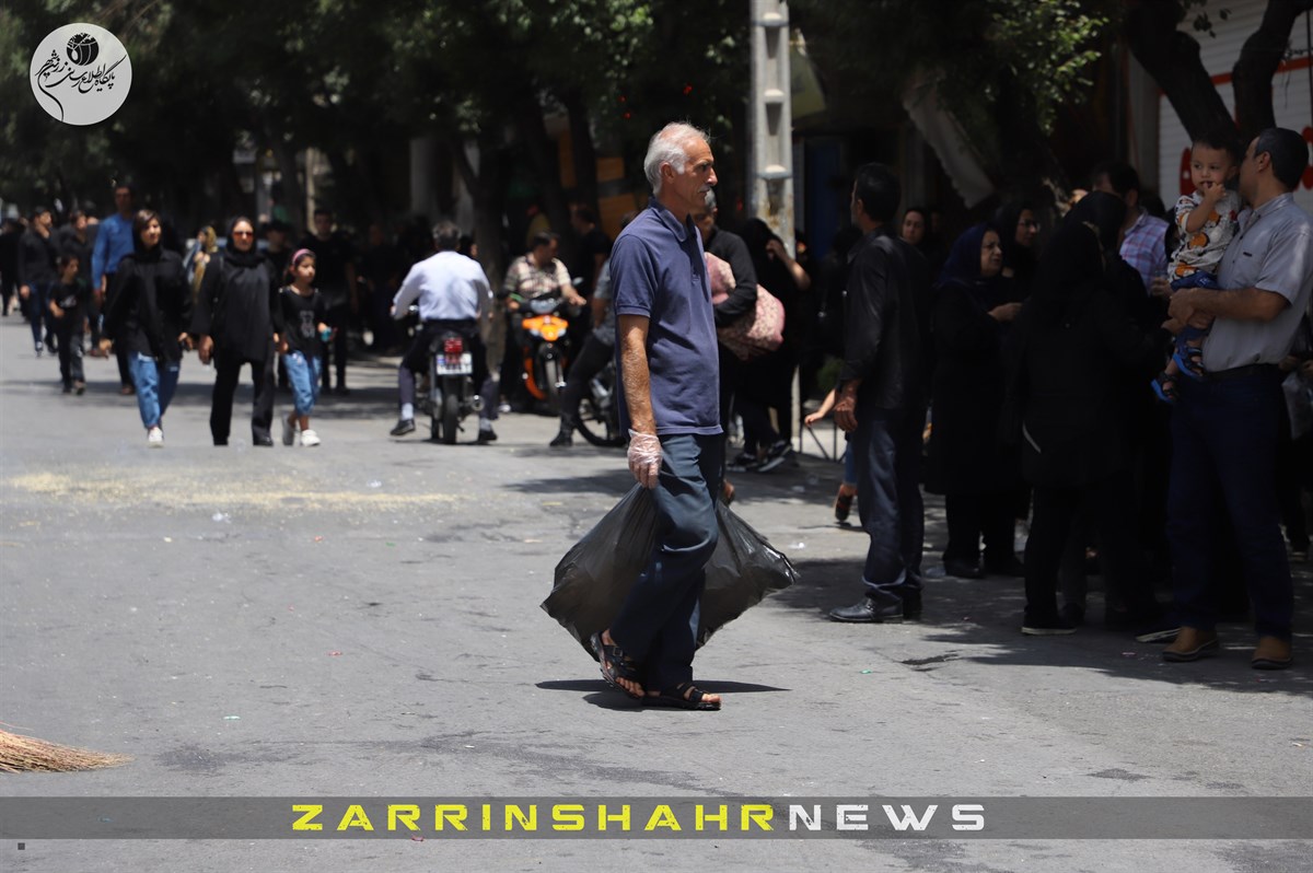 گوشه ای از تلاش کارگران شهرداری زرین شهر جهت پاکسازی معابر شهر پس از عاشورای حسینی